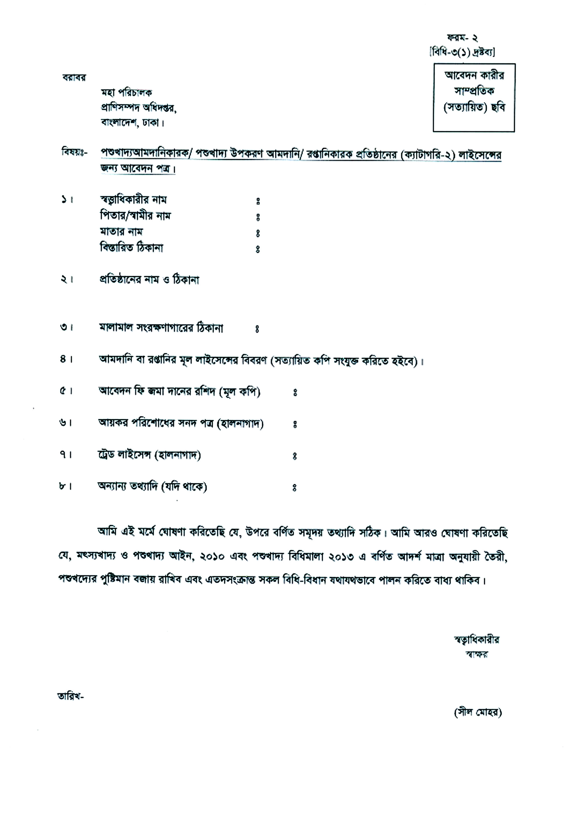| ৫ | পশুখাদ্য ক্যাটাগরী-২ লাইসেন্স আবেদন ফরম | | | ২২-০১-২০২৫ | দেখুন |