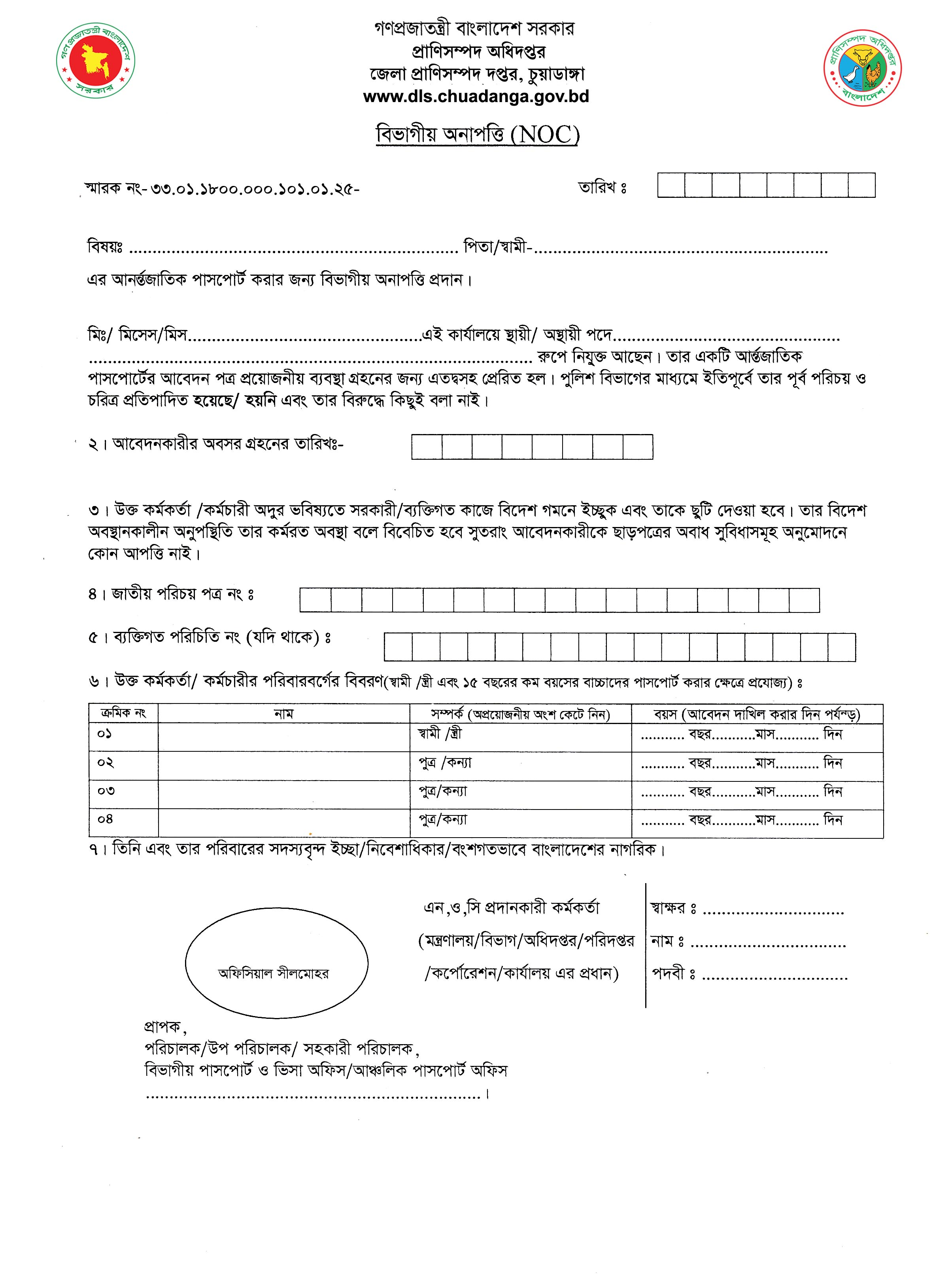 | ৭ | পাসপোর্টের অনাপত্তি ফরম | | | ২২-০১-২০২৫ | দেখুন |